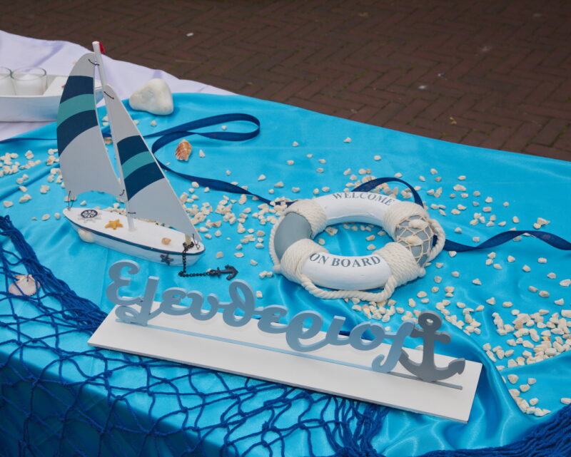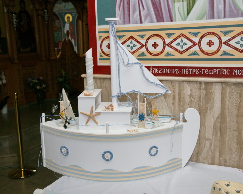 Bei den Griechen wird es meist im erweiterten Familienkreis gefeiert und auch aufwändiger mit einem Thema dazu. Dies durchzieht die sich an die griechischen Nationalfarben orientierte Dekoration vollends. Der Name des Täuflings, ein Beruf oder was auch immer können für das Thema Pate stehen. Hier einmal die Seefahrt. Die Griechen waren ja in der Antike sehr erfolgreiches Seefahrervölker. Und Blau und Weiß passen wunderbar zu diesem Thema.